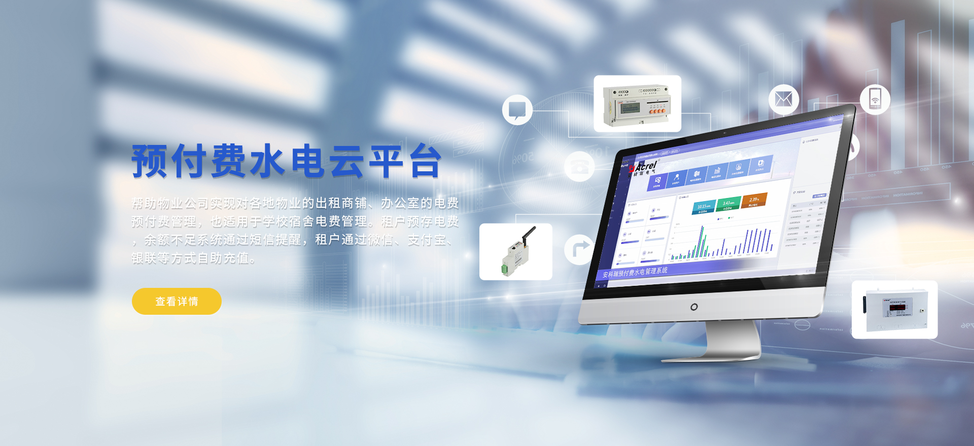 安科瑞提供的解決方案包括Acrel-EIoT能源物聯(lián)網(wǎng)云平臺、變電所運(yùn)維云平臺、安全用電管理云平臺、環(huán)保用電監(jiān)管云平臺、智慧消防云平臺、能源管理云平臺、工業(yè)企業(yè)能源管控平臺、遠(yuǎn)程預(yù)付費(fèi)云平臺、餐飲油煙監(jiān)管云平臺、電動汽車/電瓶車充電樁收費(fèi)管理云平臺、電力監(jiān)控/無線測溫系統(tǒng)、電能質(zhì)量治理系統(tǒng)、電氣火災(zāi)監(jiān)控系統(tǒng)、消防設(shè)備電源監(jiān)控系統(tǒng)、防火門監(jiān)控系統(tǒng)、應(yīng)急照明和疏散指示系統(tǒng)、智能照明控制系統(tǒng)、醫(yī)用隔離電源絕緣監(jiān)測系統(tǒng)等,幫助用戶實(shí)現(xiàn)能源智能化、可視化、精細(xì)化管理,提高用能效率和用能安全,為企業(yè)節(jié)能降耗和實(shí)現(xiàn)能源數(shù)字化建設(shè)提供數(shù)據(jù)服務(wù)。
